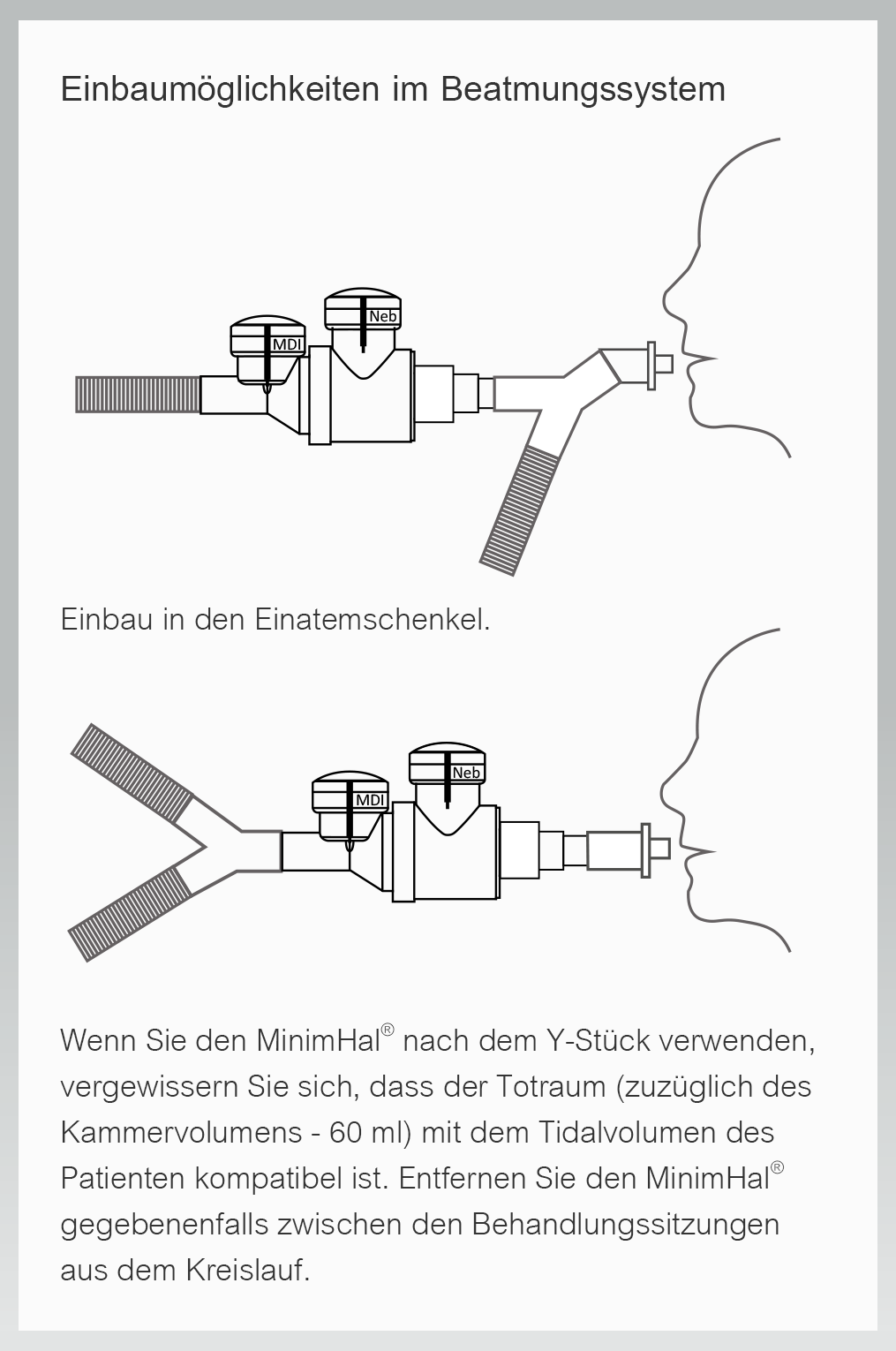 Der MinimHal® ist eine bei invasiven und nicht invasiven mechanischen Beatmungssystemen einsetzbare kleinvolumige Inhalierhilfe (Spacer).